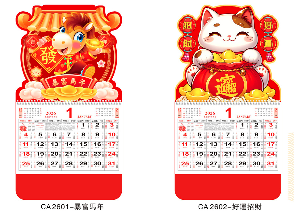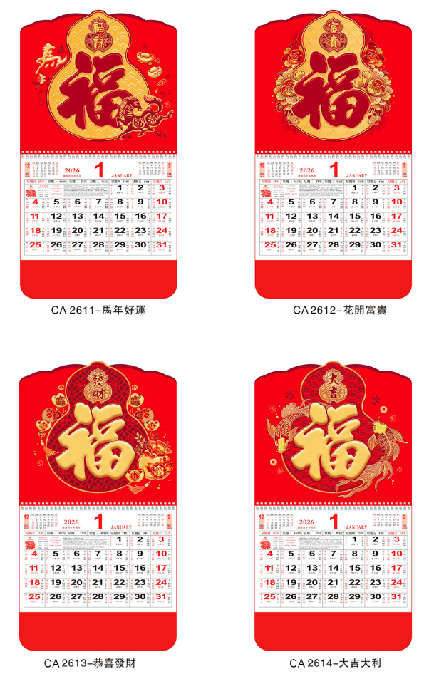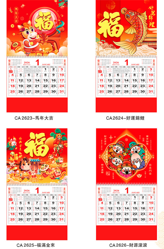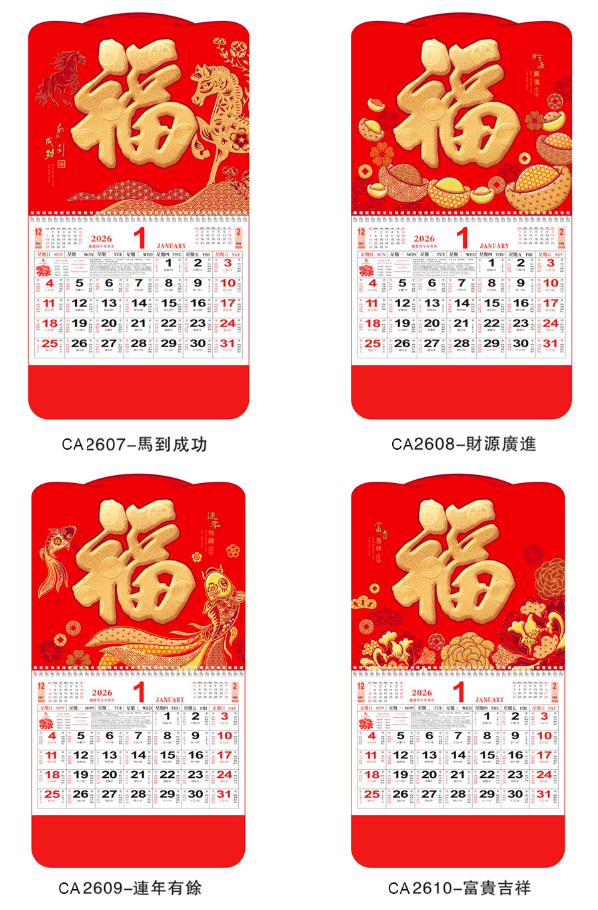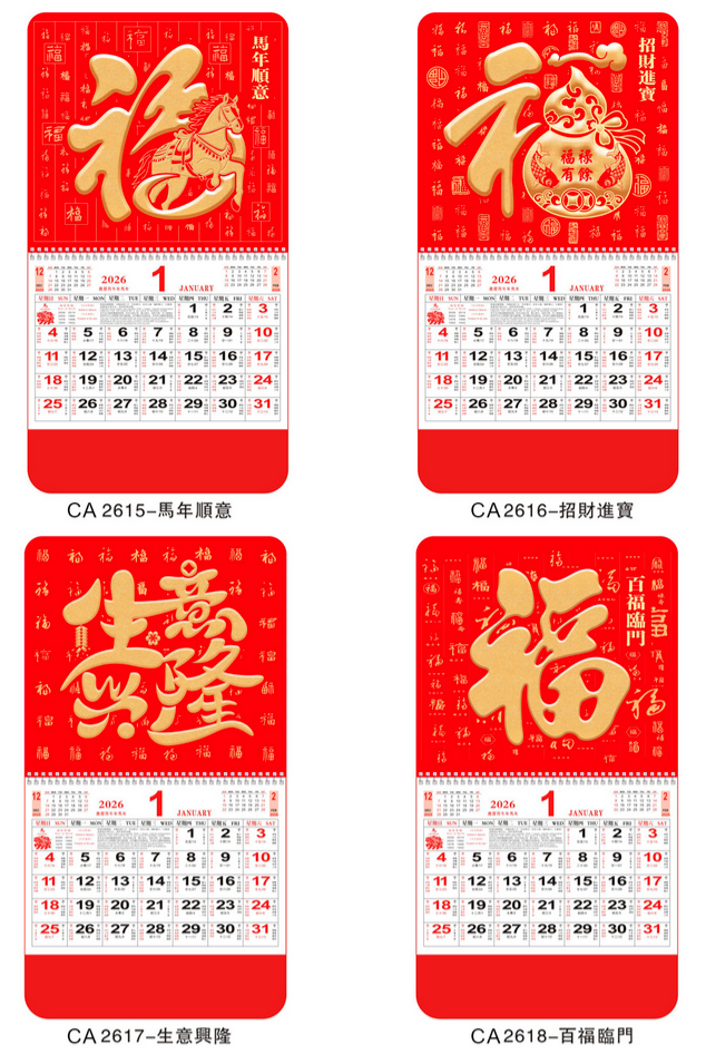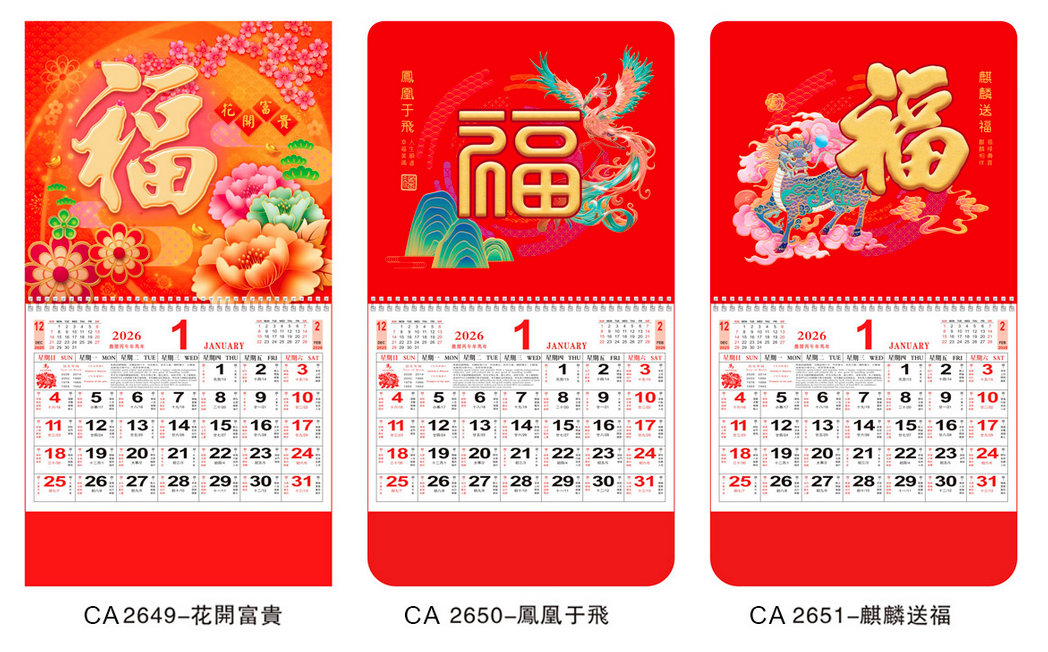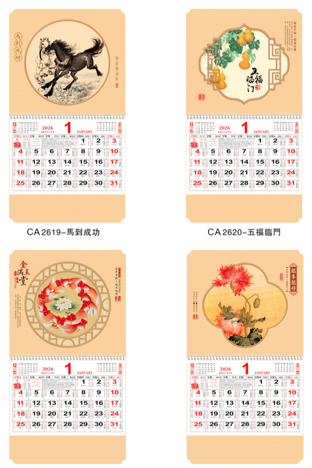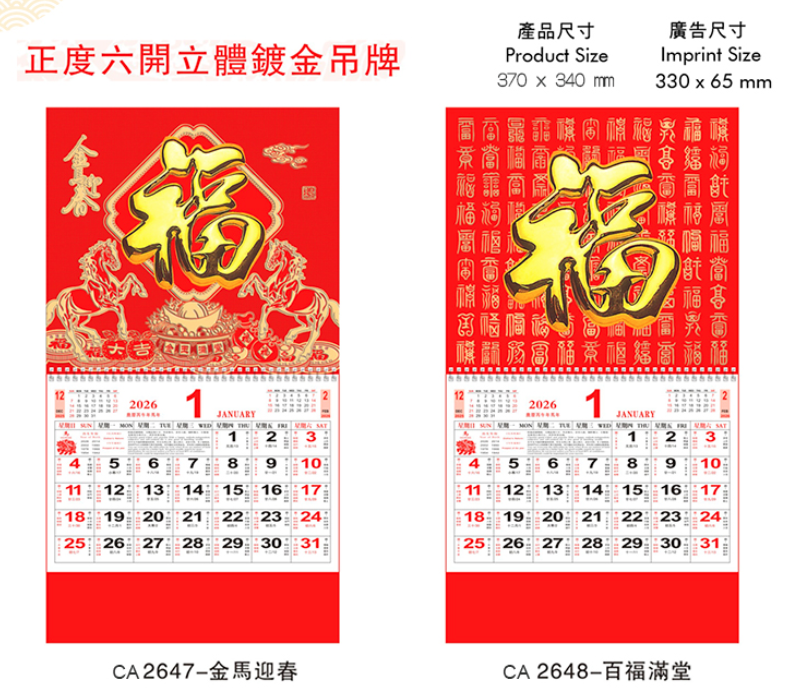 All calendars shown above are 370 mm x 340 mm, and have 330 mm x 65 mm for advertisement space.
